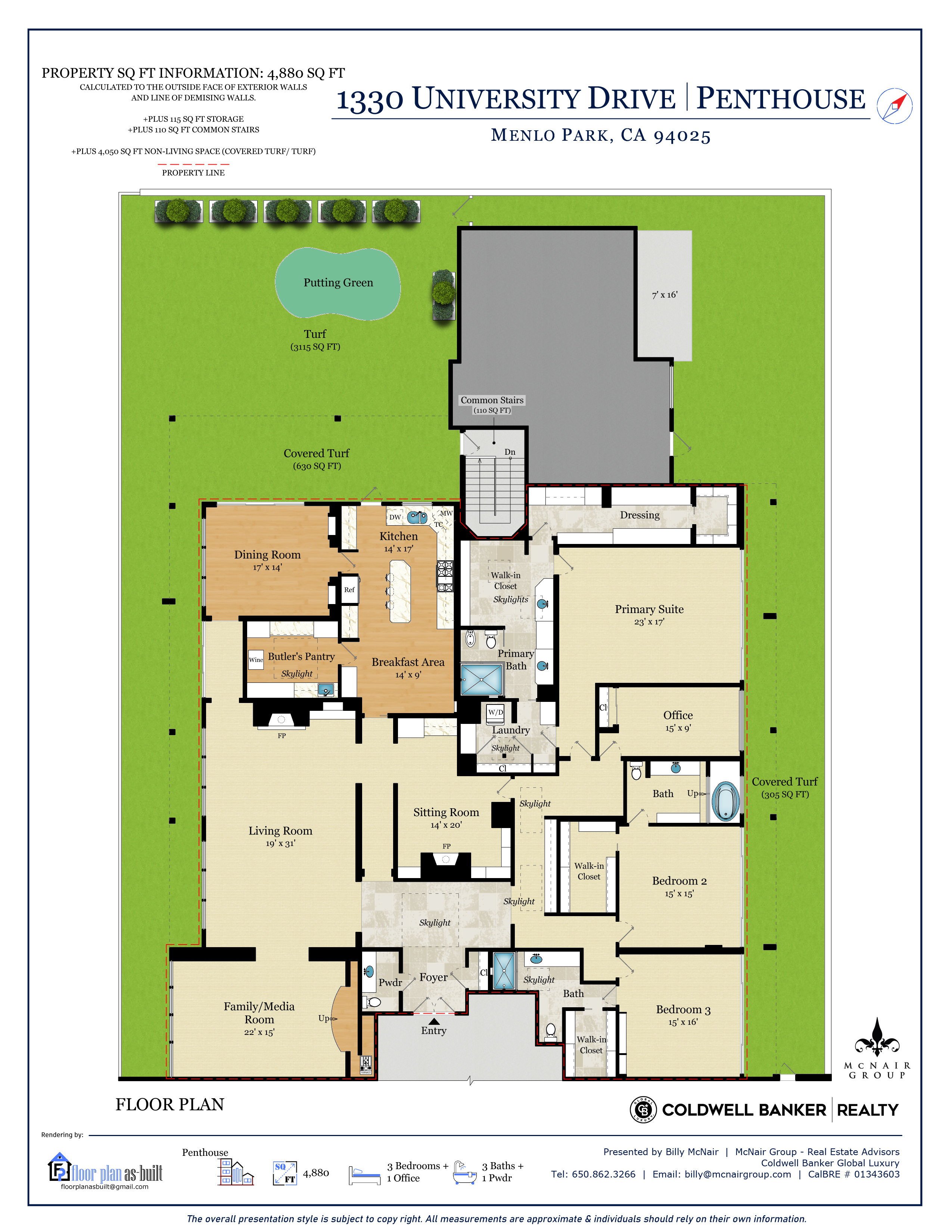 Positioned at the pinnacle of Menlo Towers in the heart of downtown Menlo Park, this exceptional penthouse presents a truly rare offering. One of only two penthouse residences in the building, and with neither having traded in more than three decades, it represents a level of exclusivity seldom found in the local market. With approximately 4,880 square feet of single level living and over 4,000 square feet of private outdoor terraces, the scale and setting are unmatched.