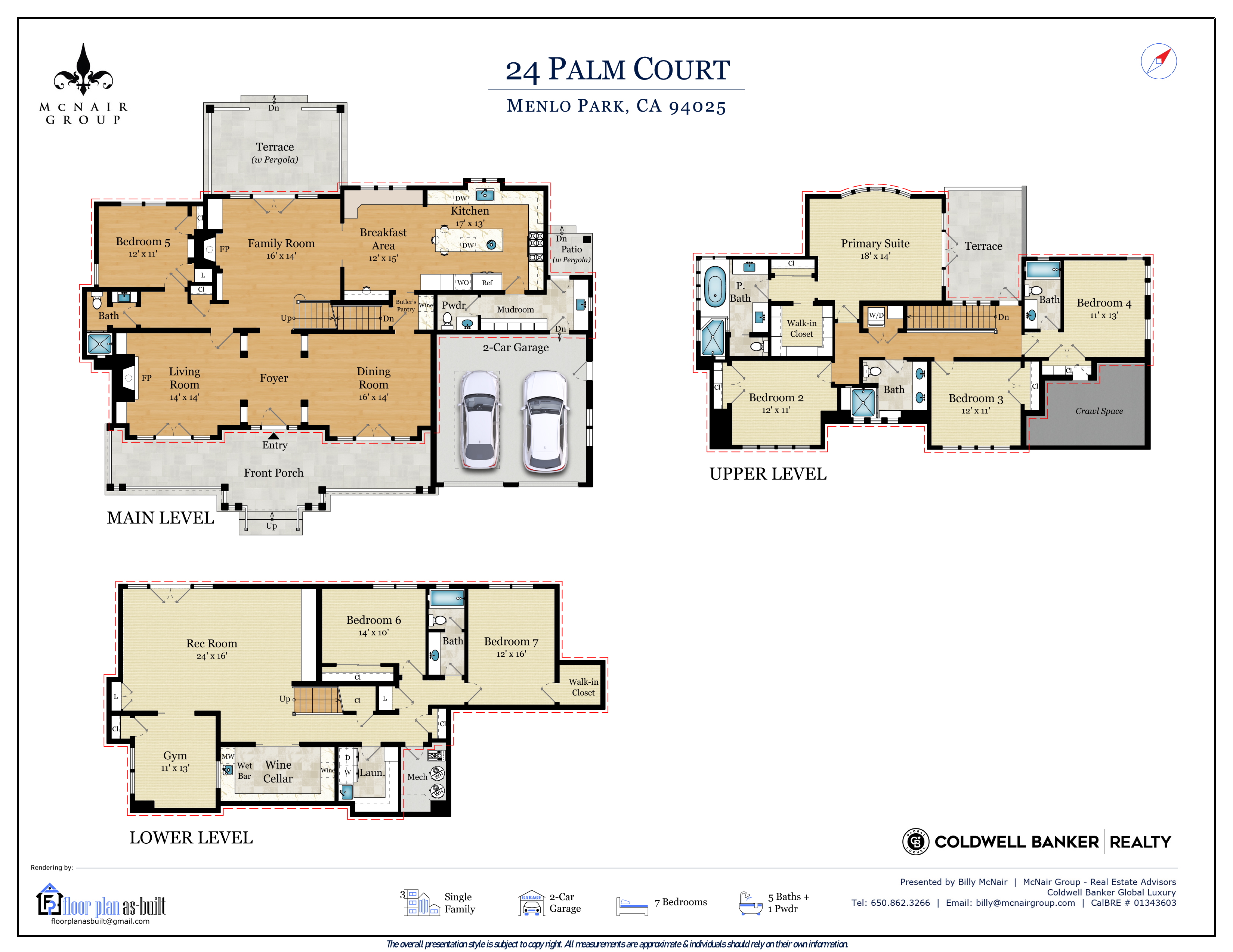 Designed by Jim Maliksi and masterfully constructed by R.J. Smith in 2010, this exquisite residence blends timeless craftsmanship with modern luxury across three levels of thoughtfully designed living space. Set on a quiet cul-de-sac in the heart of central Menlo Park, the home offers 7 bedrooms plus a gym, 5.5 baths, and 4,888 sq. ft. of interiors on a generous 10,199 sq. ft. lot. Its prime location places you moments from Stanford University, Sand Hill Road, downtown Menlo Park, leading tech campuses including Meta, and top-rated Menlo Park schools.